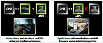 - GeForce Boost turbocharges the performance of your GPU while Hybrid Power unleashes graphics performance and saves power when doing simple processing.