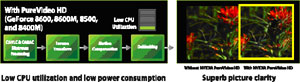 NVIDIA® PureVideo HD with hardware H.264, VC1, and MPEG4 video decode